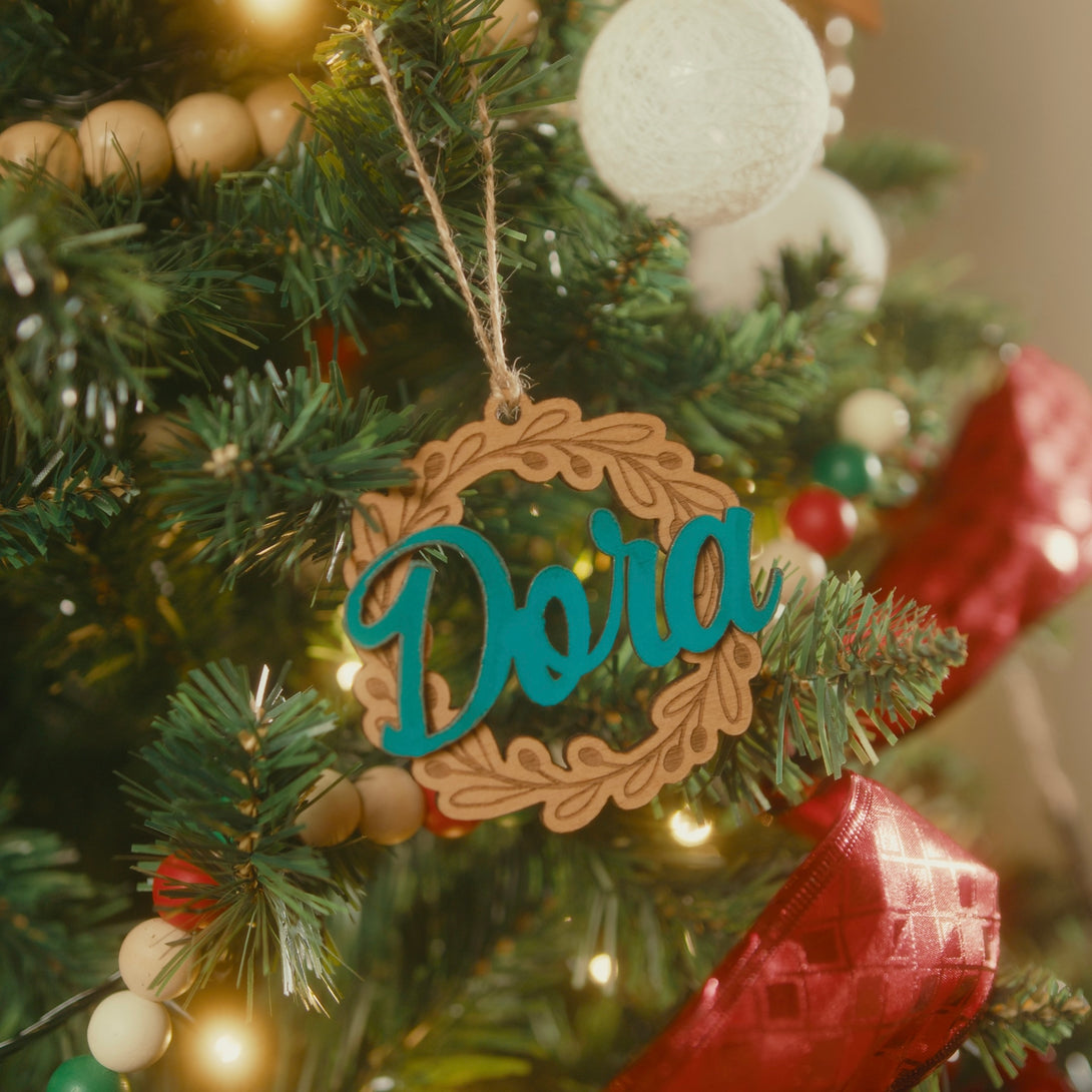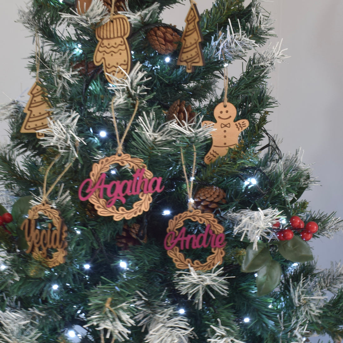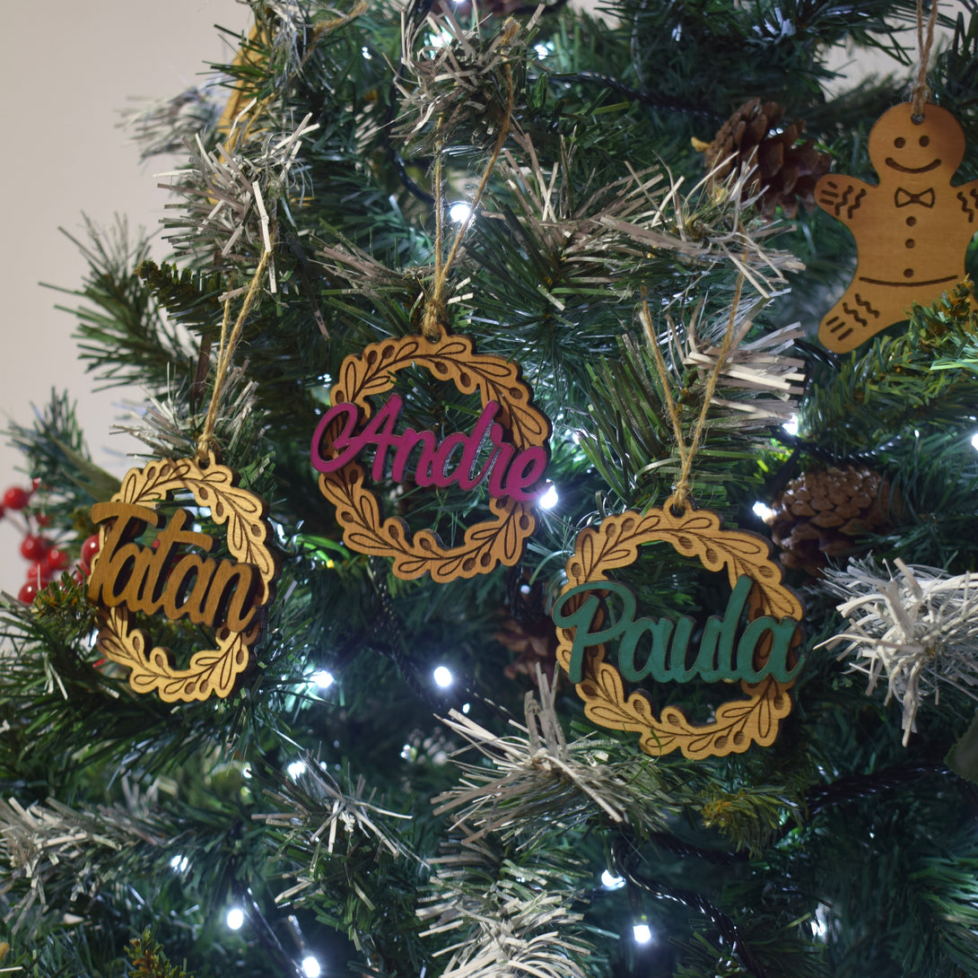 ¡Llena tu árbol de navidad con los nombres de las personas que más quieres! Adornos de 8cm de alto totalmente personalizado, hecho con madera natural sostenible certificada de 3 mm cortada y grabada con tecnología láser.